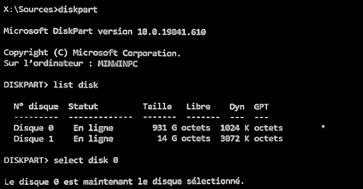 select disk NwhereNrefers to the number of the disk which contains our EFI system partition (for me it was Disk 0 so I ranselect disk 0).